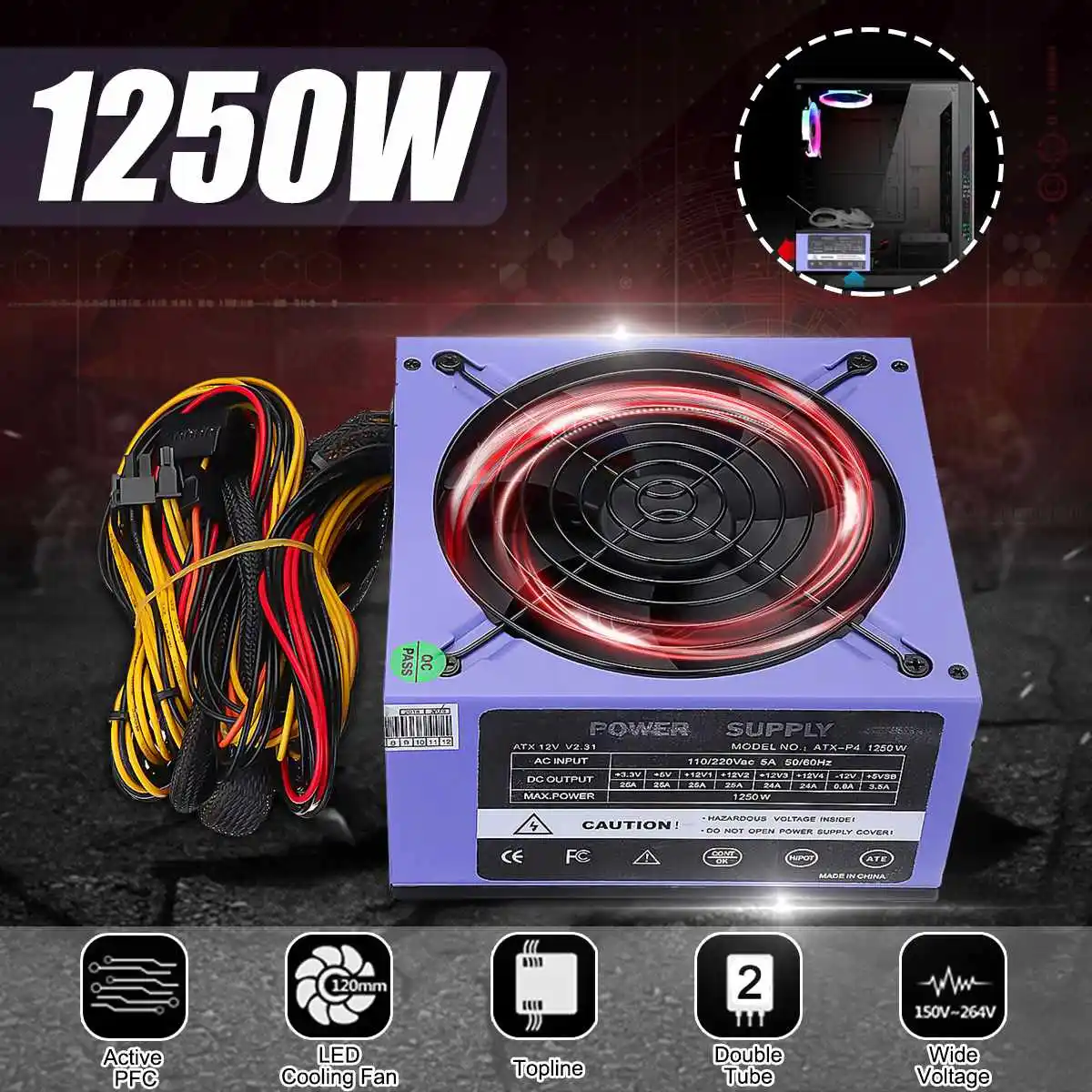 معرض ل 1250 W PC امدادات الطاقة 12 سنتيمتر LED مروحة 24 دبوس PCI SATA ATX AMD PFC 12 V الكمبيوتر الألعاب امدادات الطاقة للكمبيوتر سطح المكتب