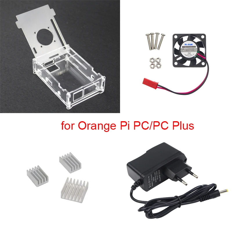 استعارات ل ل البرتقال بي PC شفافة الاكريليك حالة + 5 فولت 2A امدادات الطاقة شاحن + التبريد مروحة + الحرارة بالوعة دعم ل البرتقال بي PC زائد